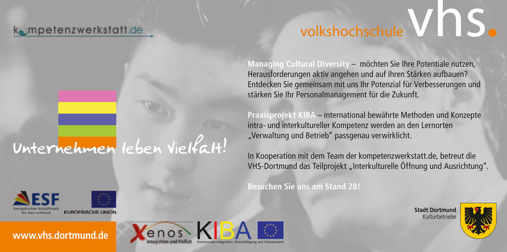 XENOS Projekt KIBA - Kommunale Integration, Beschäftigung und Arbeitsmarkt – Interkulturelle Öffnung, Qualifizierung und strukturelle Ausrichtung von Verwaltung, Betrieb und Beruf – besuchen Sie uns!